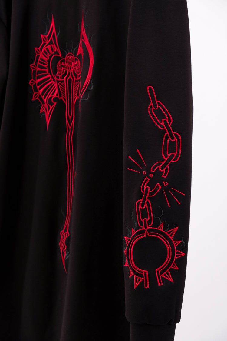 This fully embroidered cardigan features minimalistic designs, with unique class-specific skills embroidered on the sleeves. Perfect for layering, it combines fantasy flair with everyday comfort.